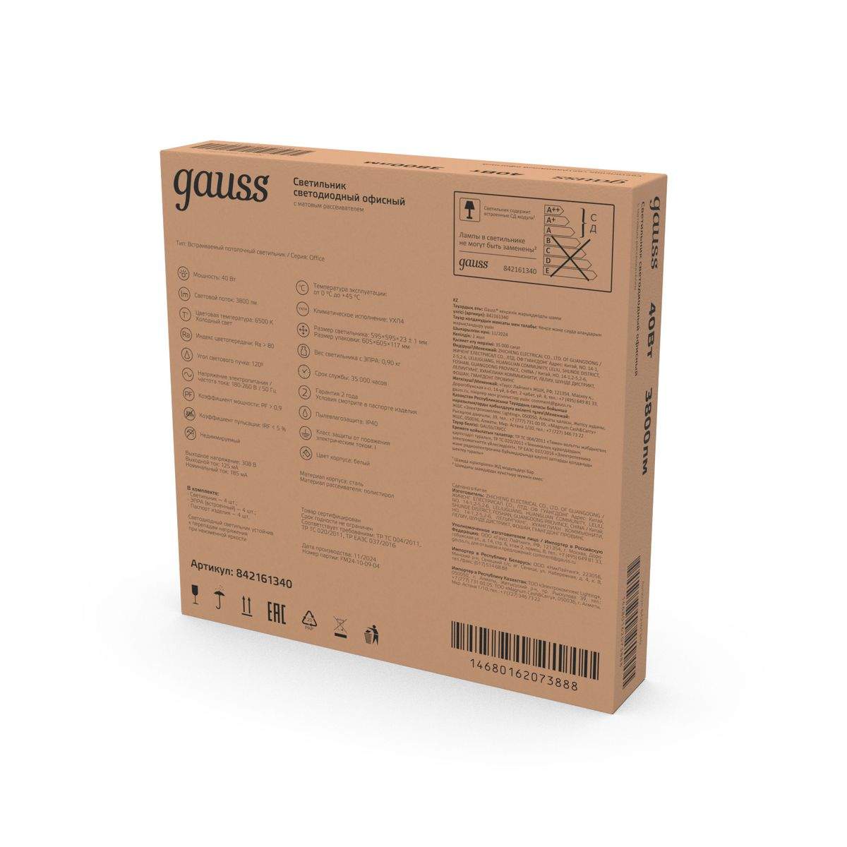 —Встраиваемый светодиодный светильник Gauss с равномерной засветкой 842161340 в Беларуси