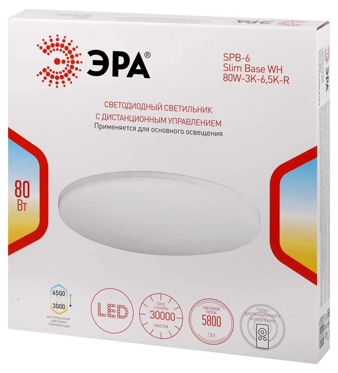 —Светильник потолочный светодиодный ЭРА Классик с ДУ SPB-6 WH 80W-3K-6,5K-R Slim Base Б0069764 в Беларуси
