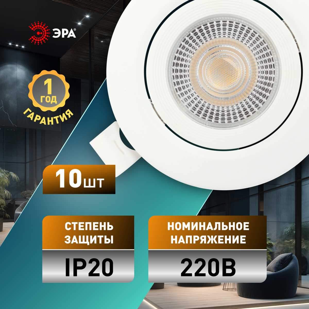 Светильник светодиодный встраиваемый ЭРА KL LED 25A-5 3K WH SET 10 5Вт 3000К круглый поворотный белый набор 10 шт Б0070936