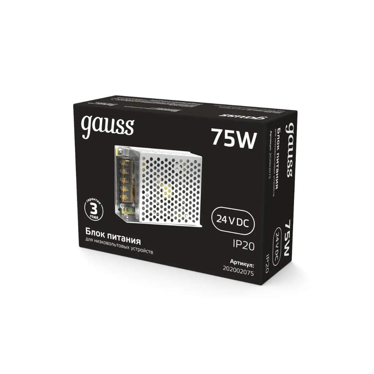 Блок питания Gauss 75W 24V IP20 202002075