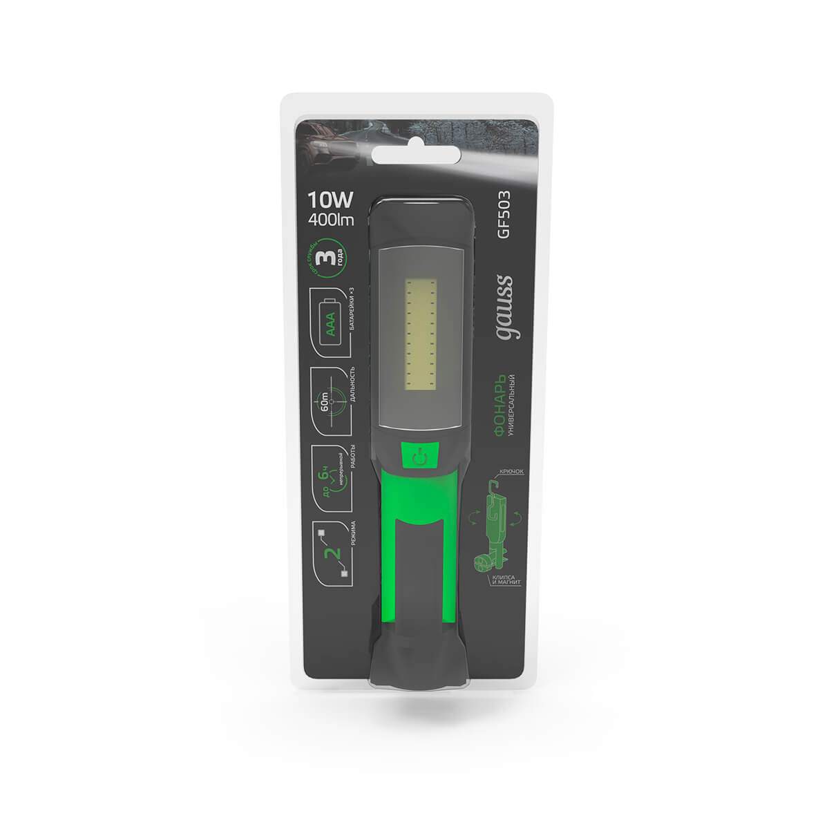 —Рабочий светодиодный фонарь Gauss от батареек 220х46 400 лм GF503 в Беларуси