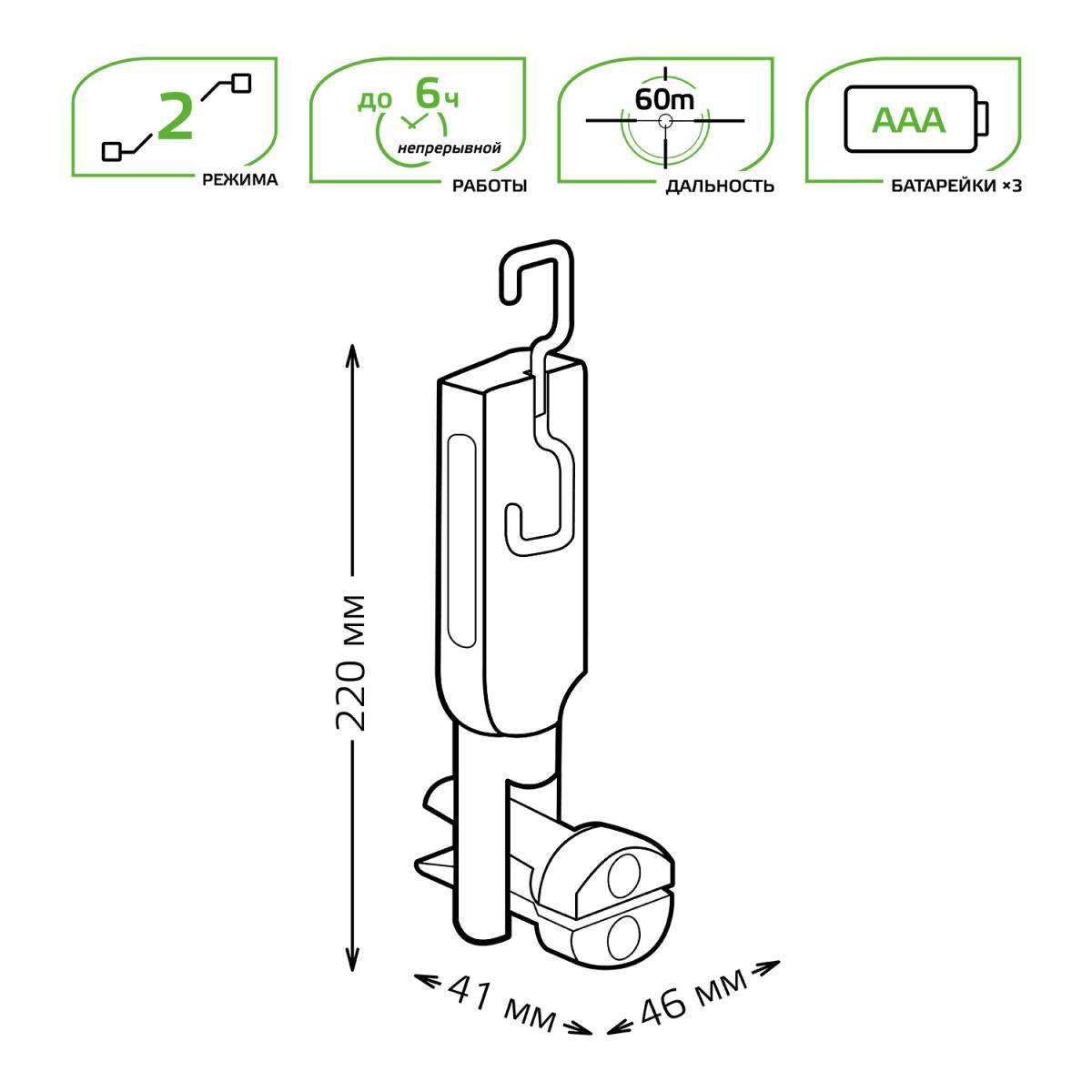 Рабочий светодиодный фонарь Gauss от батареек 220х46 400 лм GF503