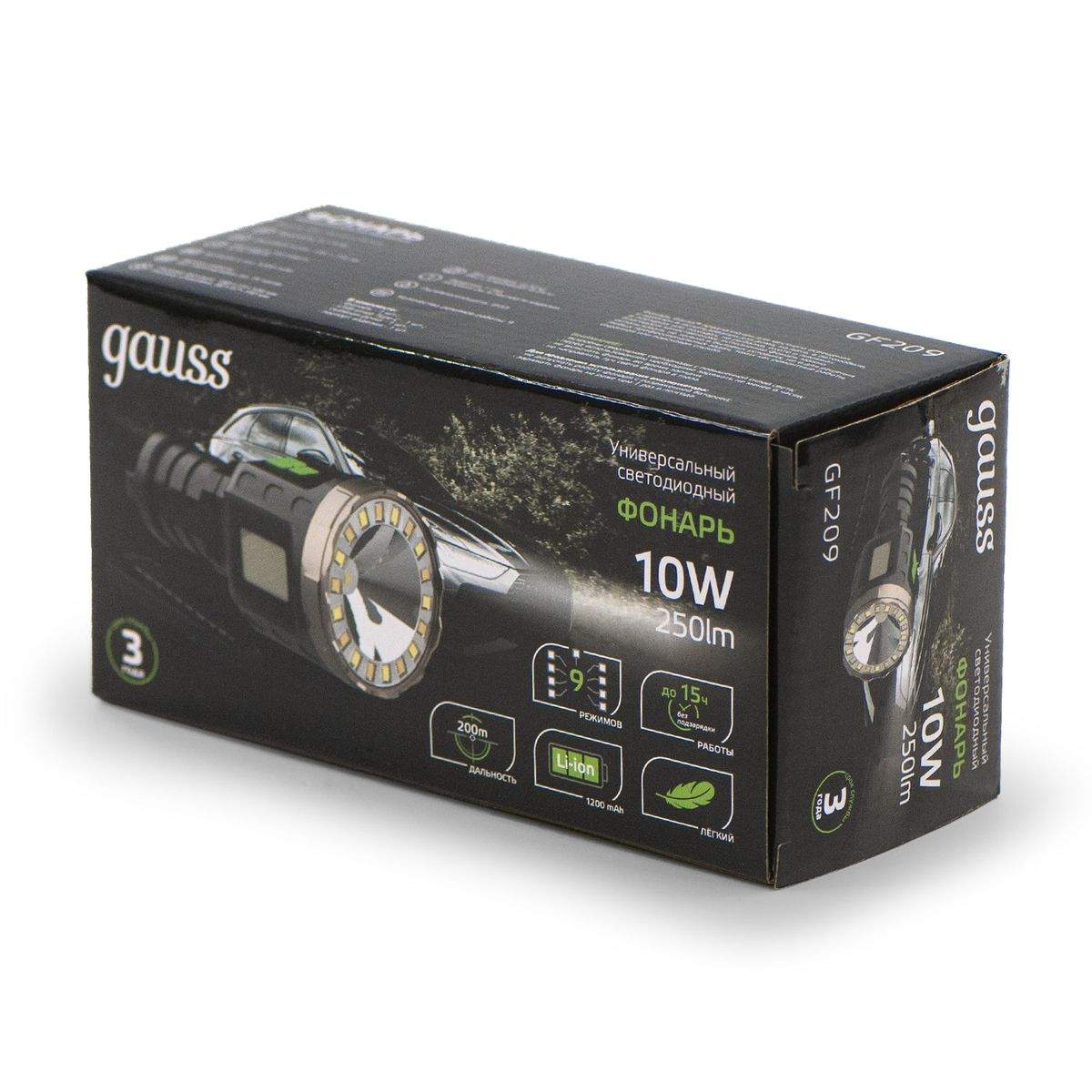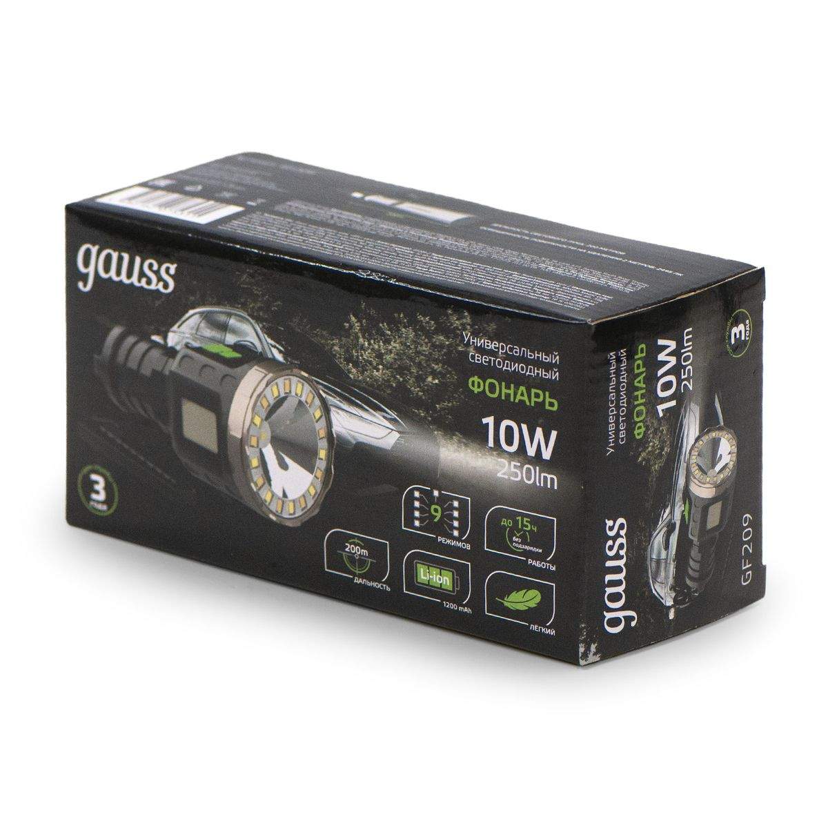 —Ручной светодиодный фонарь Gauss аккумуляторный 185х106 250 лм GF209 в Беларуси